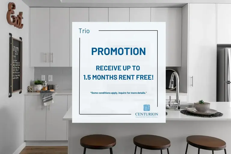 -------------AboutLocated in Kelowna's desirable Glenmore neighbourhood, TRIO Apartments offers studio, one, and two-bedroom suites. These luxury suites offer open-concept kitchens and well-designed layouts. The properties were constructed in 2019 and have maintained their glamour since. Come and visit us today and view our one or two-bedroom options. Perfect for single or double occupancy, the suites are great options for students, roommates, families, singles and more. We look forward to welcoming you home to Trio!PROMOTION: Receive up to 1.5 months rent FREE!*Some conditions apply, please inquire for more details.*Looking for a future move-in date? Give us a call today to speak with one of our Customer Care Representatives to find out more."Kelowna students, are you ready for back to school this Fall? Secure your unit today!" Tour Options: In personVirtualSuites offers:Full-sized stainless steel appliances - Fridge, Stove, Microwave & DishwasherIsland with quartz countertops - offering the perfect entertaining solution Luxury vinyl flooring throughout the suiteEach bedroom offers their own private ensuite bathroomBalconies in every suite for extended living spaceAir conditioning in each unit - stay cool all summer long!Full size washer & dryer In-suite Property offers:Newly Renovated Fitness CentrePet friendly - we look forward to welcoming home your furry family memberOutdoor playfield - perfect for a quick game of soccer Picnic areaSecured bike storage Onsite dog run - great extra space for your dog to get all their energy out with some companions!Underground parkingVideo Surveillance24/7 Online Maintenance & Emergency Maintenance servicesCommunity offers:Easy access to downtown Kelowna and Kelowna International AirportNext door to a large plaza with restaurants, grocery stores etc.Close to the University of British Columbia Okanagan CampusWalking distance to Kane Road commercial hubNearby Knox Mountain Park and Stephens Coyote Ridge Regional ParkFees:*Security deposit - $499*Pet deposit - equal to half a month's rent*Outdoor Parking: $85/month*Indoor Parking: $110/month*Storage: $95/monthSuite images shown represent standard unit finishes, which may differ between units. Suite layout varies.Utilities IncludedWater