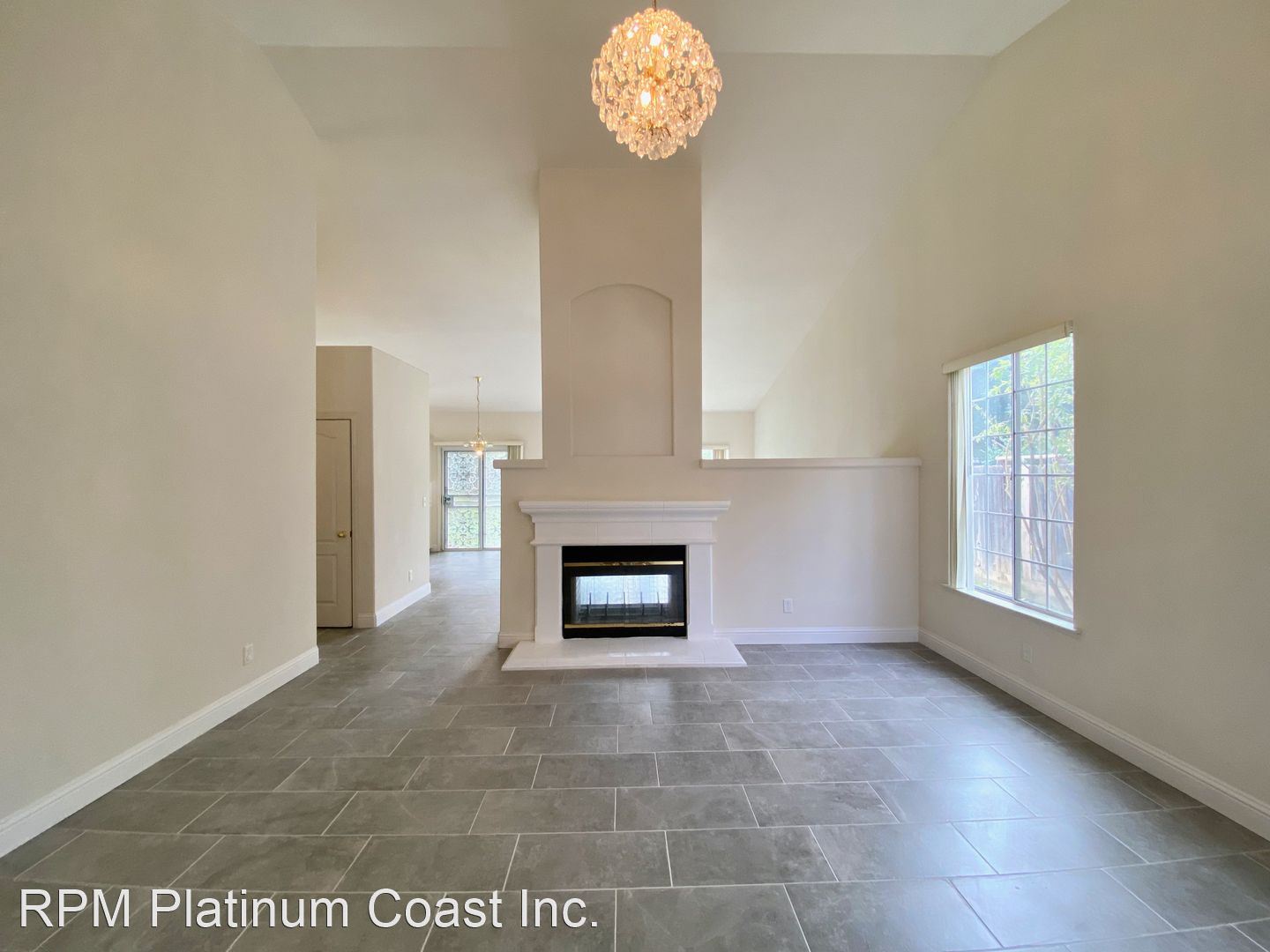 Front living room has vaulted ceiling and 2 sided gas fireplace.