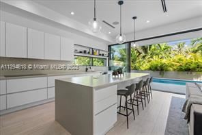 FURNISHED NEW CONSTRUCTION FOR RENT, Miami Beach masterpiece nestled on prestigious Bay Dr. No expenses spared, with 5 beds & 5.5 baths of seamless living, spread across 2 stories. Loaded w/energy efficient & sustainable features such as high elevation, double-pane impact windows, high-efficiency AC, LED lighting, induction cooktop & more. This fully automated smart home has state of the art security, technology & finishes including: Sonos indoor-outdoor entertainment, security & surveillance, Bosch appliances, Italian doors & kitchen by Nobilia. An entertainer's dream home with infinity pool on ground level & expansive terrace on 2nd level. Fully furnished allowing for turnkey experience, just bring your toothbrush!