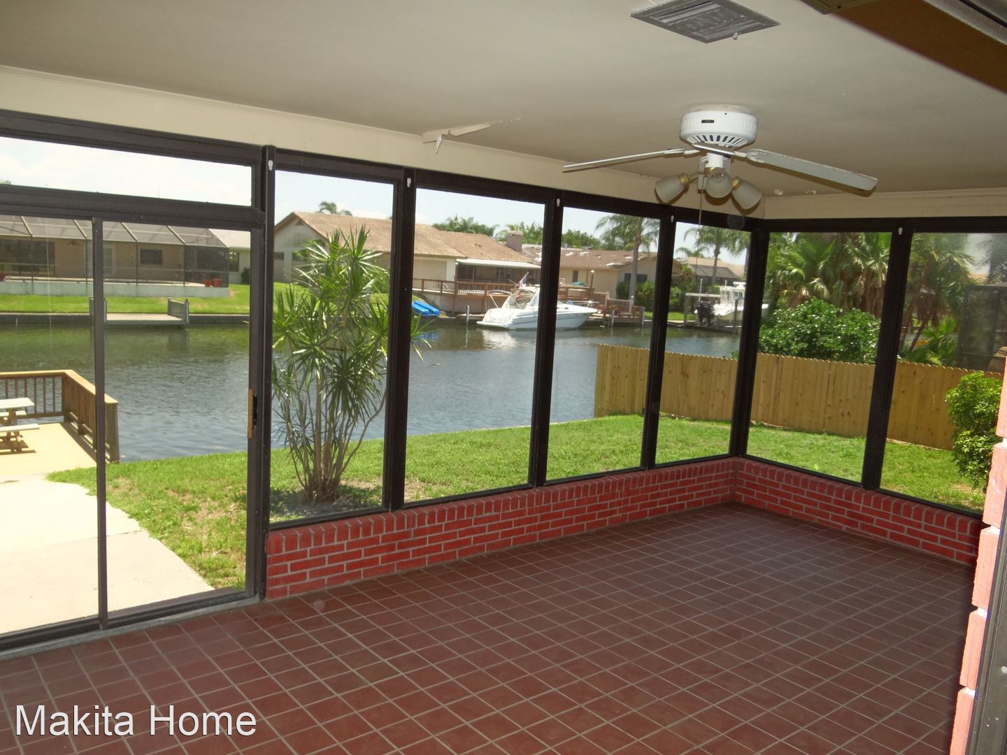 The home is located on a quiet street in lovely neighborhood. When you enter the front door, you step into a large living room with a fireplace and 3 sliding doors that open out onto a screen porch overlooking the canal. The home has a gorgeous kitchen, with tons of cabinets and an eat in space also. Sliding doors that also open out onto the screen porch.