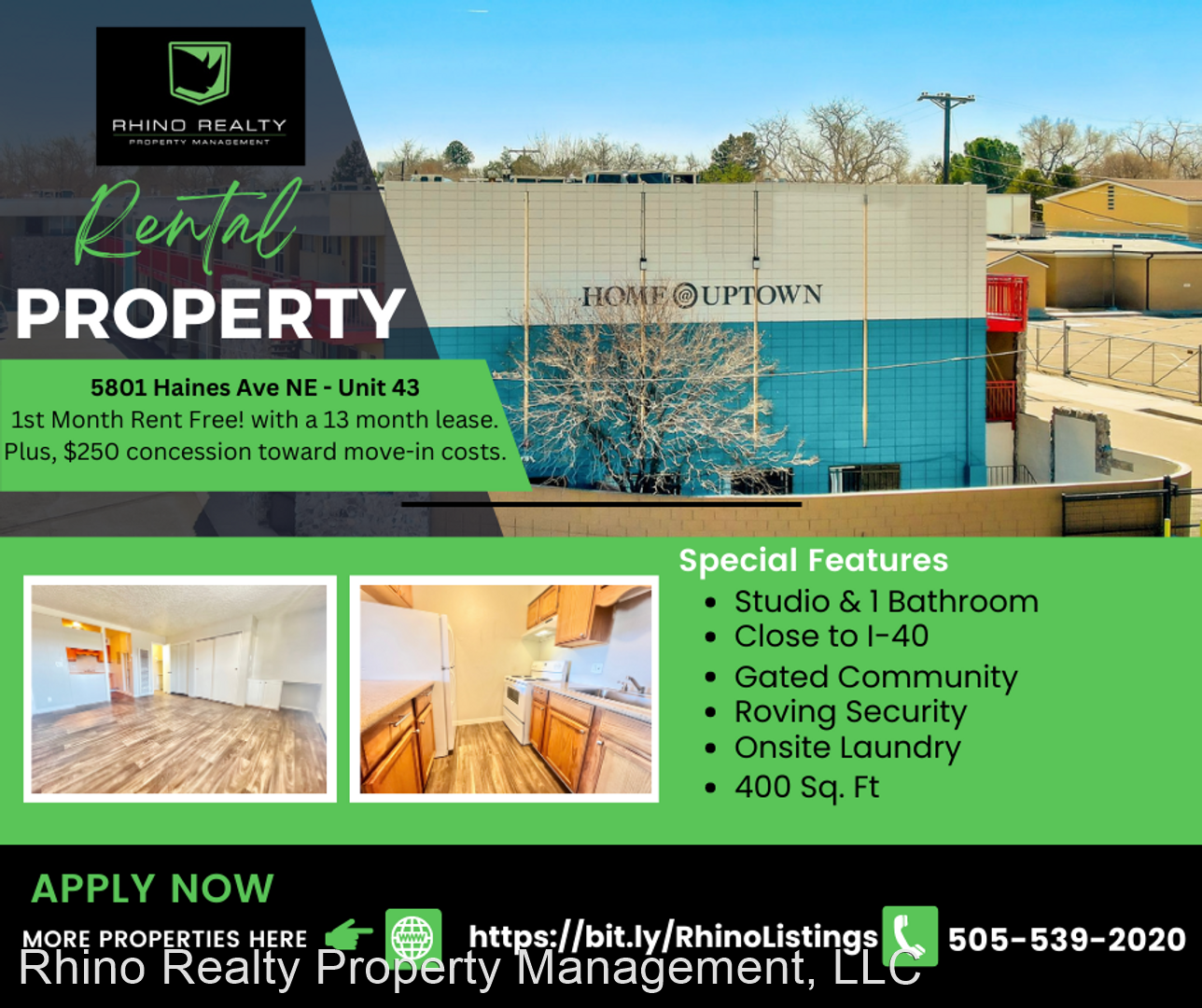1st Month Rent Free! Welcome to Home @ Uptown! Lovely Studio, 1 Bath In The NE! - 1st Month Rent Free! Home @ Uptown! Conveniently located near Uptown, Coronado Mall, and many restaurants. Fast Access to the highway and a beautiful park within walking distance from the complex. Gated community.