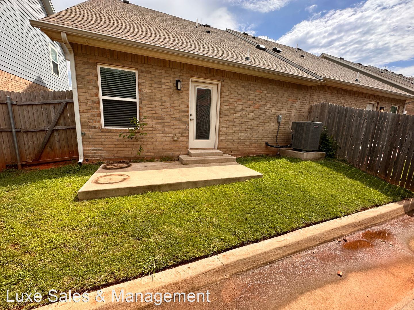 Beautiful Duplex In Edmond * 3/2/2 with Lawn Care Included (15th & Sante Fe) - Contemporary design inside and out, easy to maintain and super cute! Lawn Care is included in the HOA. Luxury finishes such as quartz counters, luxury vinyl wood look flooring, and carpet in the bedrooms. Kitchen has stainless steel appliances, ceiling fans, blinds on windows and LED lighting throughout. Open concept kitchen, living, dining includes large peninsula island and plenty of cabinets, large laundry room w/ pantry storage, plus some under stair storage. Half bath, master bedroom and master bathroom suite downstairs. There is also a private entrance to small fenced yard with patio. Upstairs are 2 bedrooms with landing space and shared hall bath with tub/shower. Energy Efficient...save lots in utility cost with tankless hot water heater, high efficiency gas furnace, programmable zoned thermostats for up and downstairs, LED lighting PLUS more. Zillow applications will not be accepted, please apply directly through our website. Pets welcome upon approval and pet screening through https://luxe-pm.petscreening.com (no aggressive breeds). Pet deposit of $500 per pet or you can opt for a deposit bond to reduce out of pocket costs, which can replace security deposit too. Monthly pet fee determined by paw score from pet screening. Avg pet fee is $20 per month. ALL applicants must go to pet screening regardless if no pets, ESA, service animals and household pets. Call us at 4*0*5*7*6*6*8*8*9*4* or FOUR ZERO FIVE SEVEN SIX SIX EIGHT EIGHT NINE FOUR for a viewing. Visit our website at Luxe-PM.com OR google Luxe Sales & Management In OKC for a complete list of our vacancies. Self showing available!