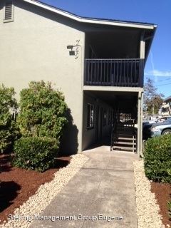 (DUP) Studio Apartment - Close to Campus - Nice studio apartment, very close to campus and on bus lines.Wood plank flooring in living area and vinyl in the kitchen/bath. Nice upgrades to the property including brand new windows. Onsite laundry and off-street parking. Rent includes water, sewer, and garbage. Tenant is responsible to electricity thru EWEB. 12 month lease required, no pets.