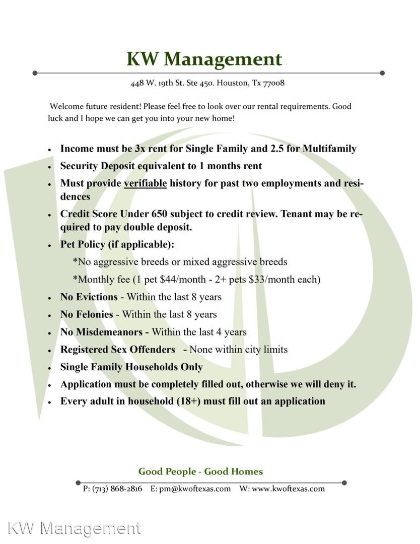 -Have a look at our rental criteria, its the last few pics on the listing. Feel free to email or call us to schedule a tour. Our rentals dont last, we are below market rents and have great management!