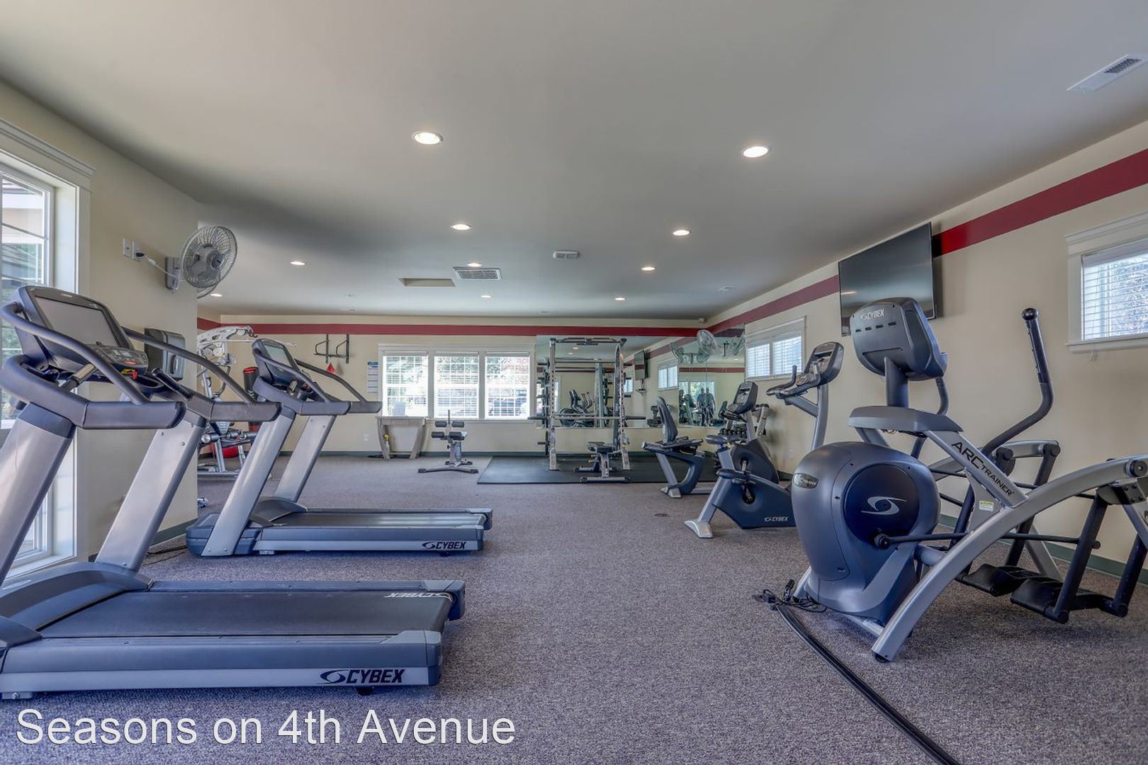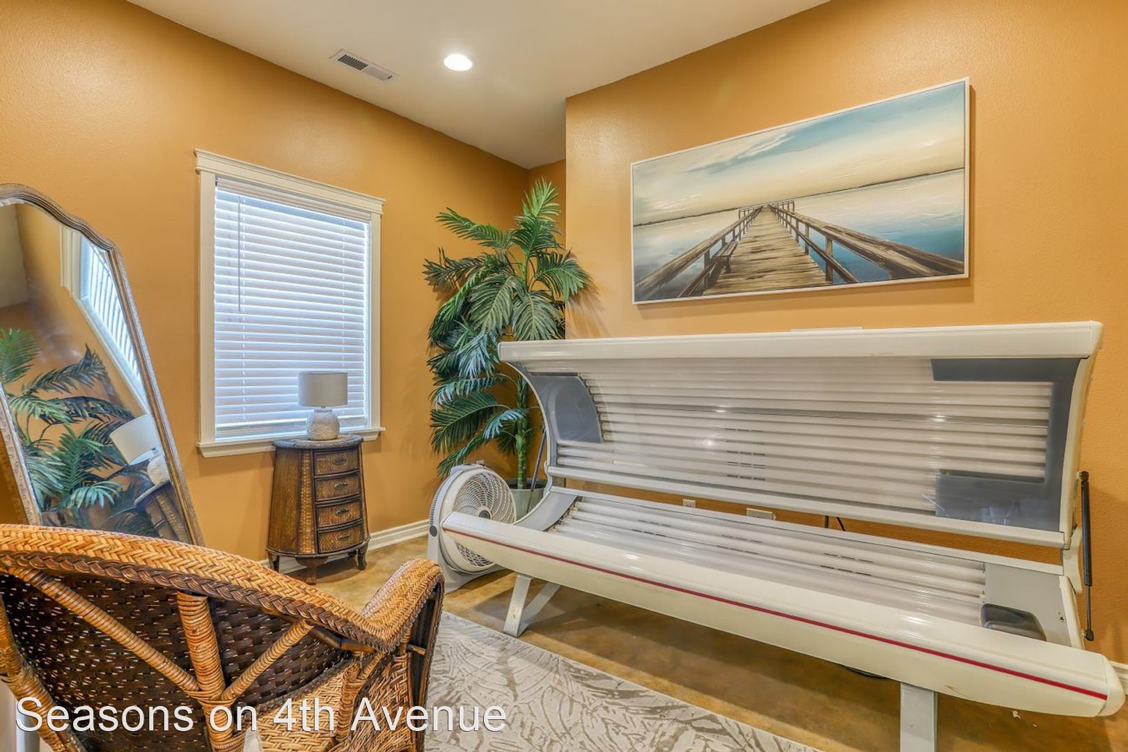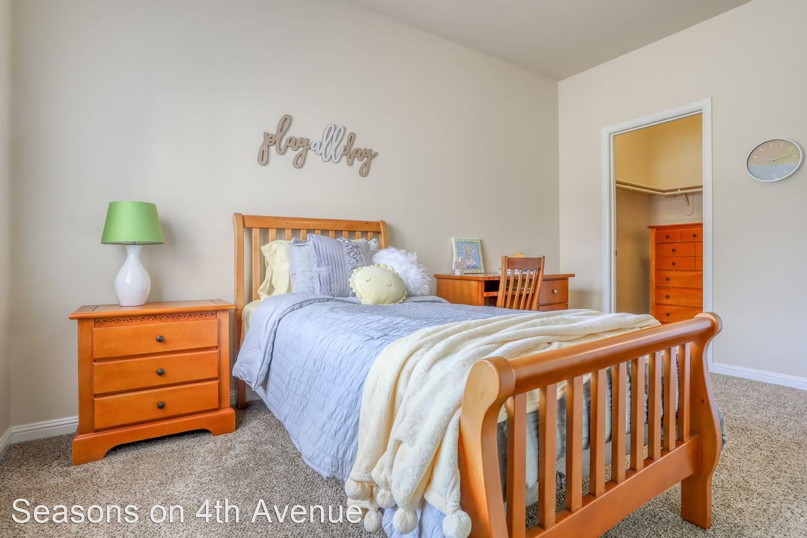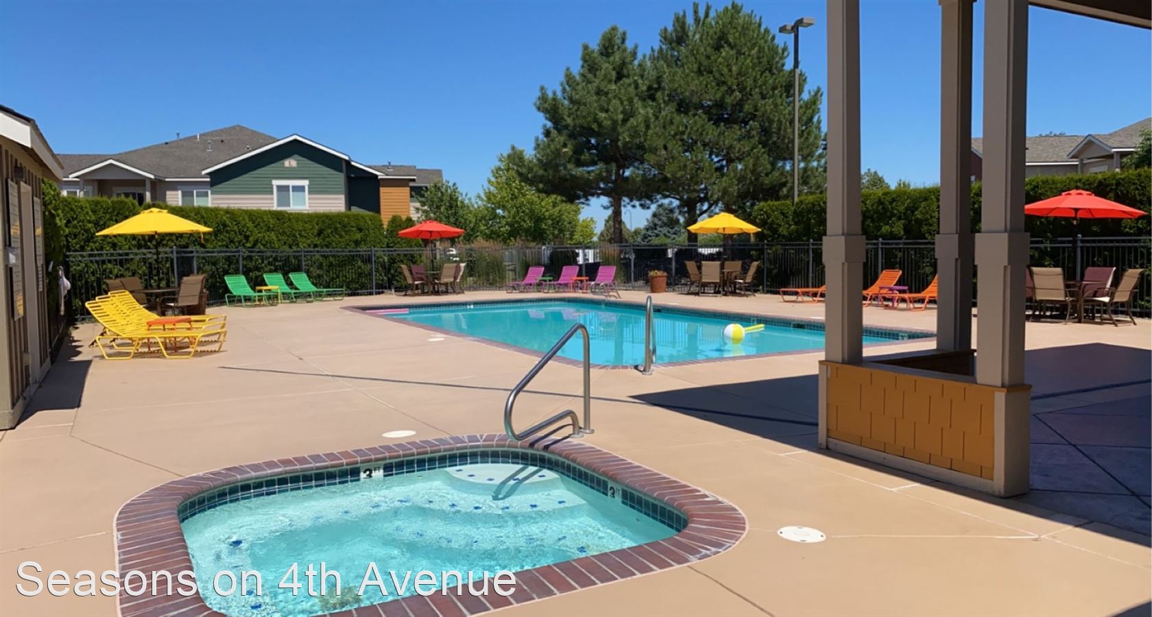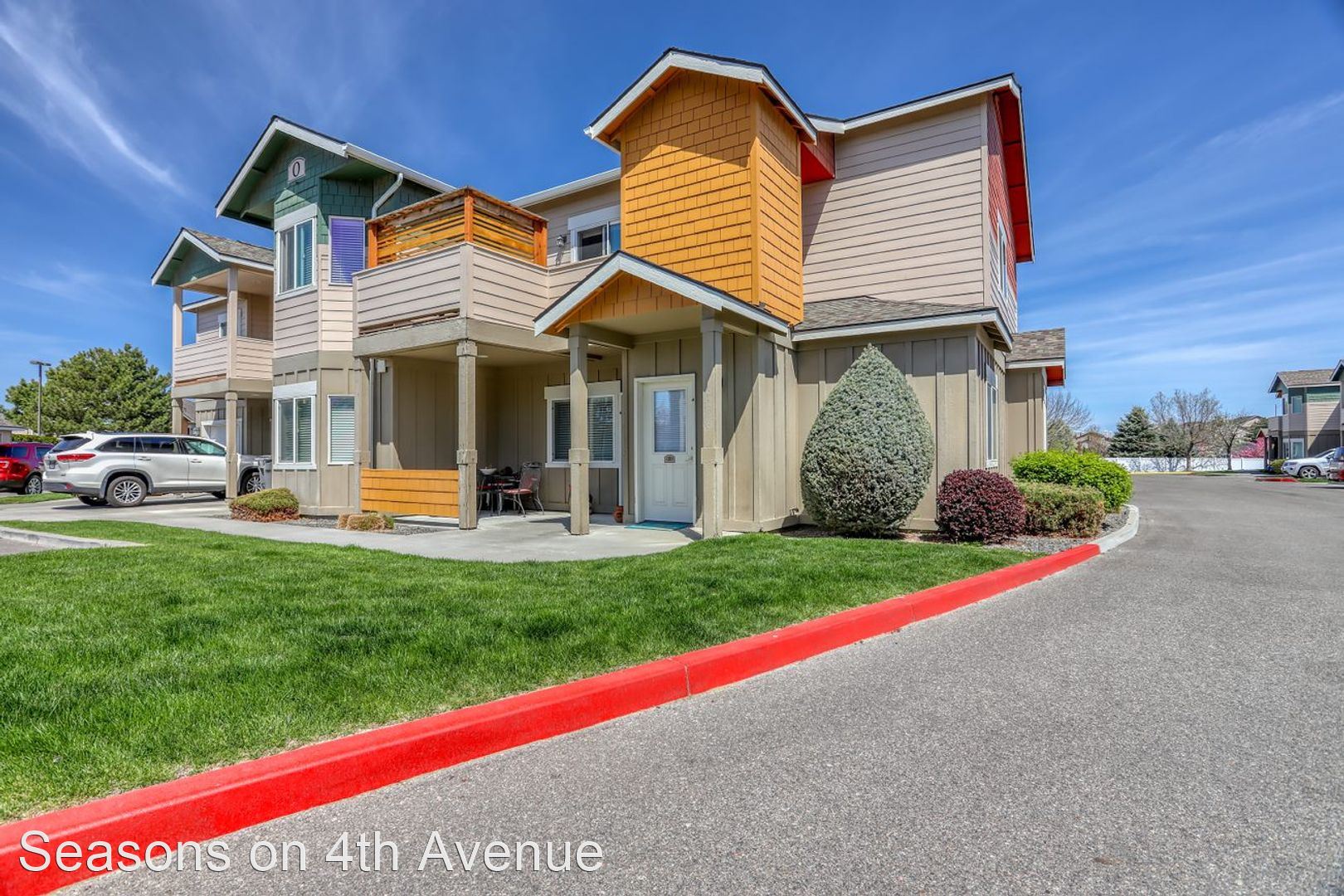 Condo Style Living On Ground Floor with Attached Garage! - Visit our website: https://seasonson4th.com Our 3 bedroom/2 bathroom plan has 1233 square feet perfectly laid out to maximize your space. The master bedroom has a big bay window and an extra-large walk-in closet. The second and third bedrooms are comfortably sized. The second bathroom is oversized with extra counter space and lots of drawers. Kitchen with oak cabinetry includes a wine rack and dining room that opens to the extra-large living room. This apartment home has an attached garage with a remote along with a parking pad, therefore, nobody can ever block you in. Every home has central heat/air, 9’ ceilings, hardwood flooring in the kitchen and custom tile in the entryways, all appliances including full-size washer/dryer, glass top stove, and large walk-in closets. Our community offers daily coffee, 24-hour fitness center, pool & spa, car wash station, bbq pits, and picnic tables. Plus, choose from 5 custom colors for your free accent wall when you sign a 12 month lease!!
