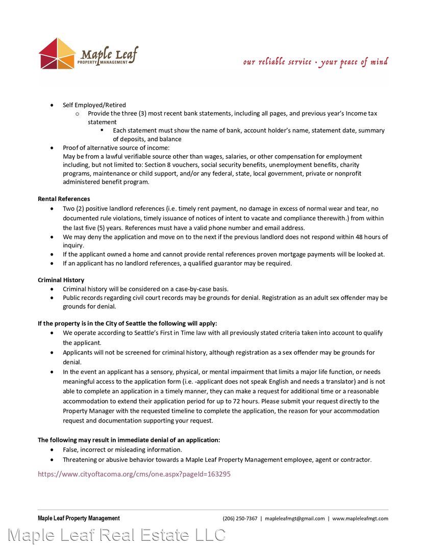 View our Rental Criteria and Application Disclosure at http://mapleleafmgt.com