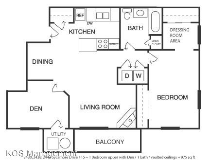 SYCAMORE - Luxurious 1, 2, & 3 bedrooms, great location in quiet neighborhood, heat and water included, controlled entry, fireplaces (most units), vaulted ceilings (most uppers), washer/dryer hook ups, garages, central air, walk in closets, Private patio or balcony.
